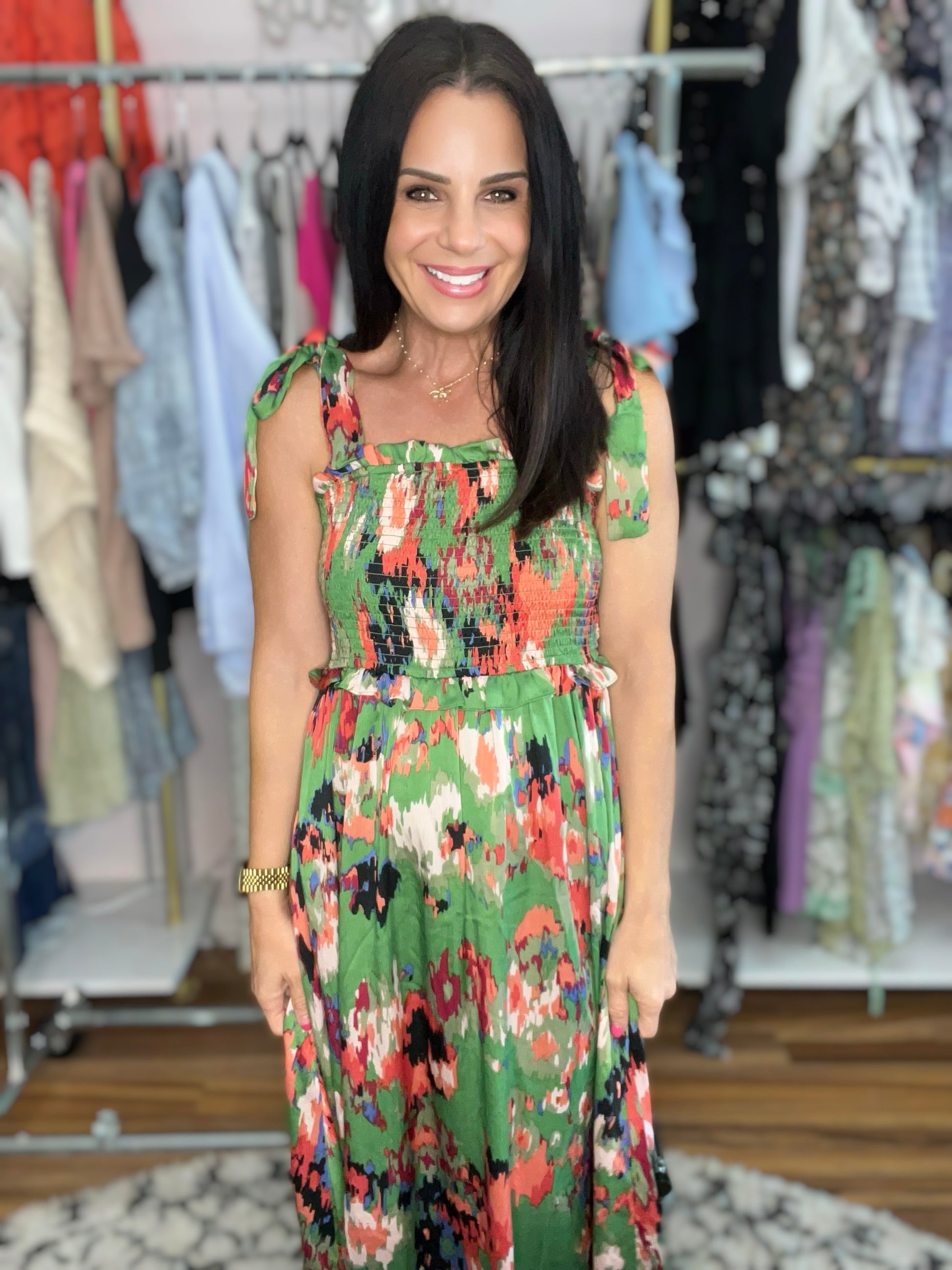 Treat yourself to the perfect summer dress - our A Little While Longer Dress makes a statement in an eye-catching dark floral print with romantic details like a smocked bodice and fluttery self-tie straps. Accentuated with flouncy ruffle details, you'll look and feel amazing all season long.