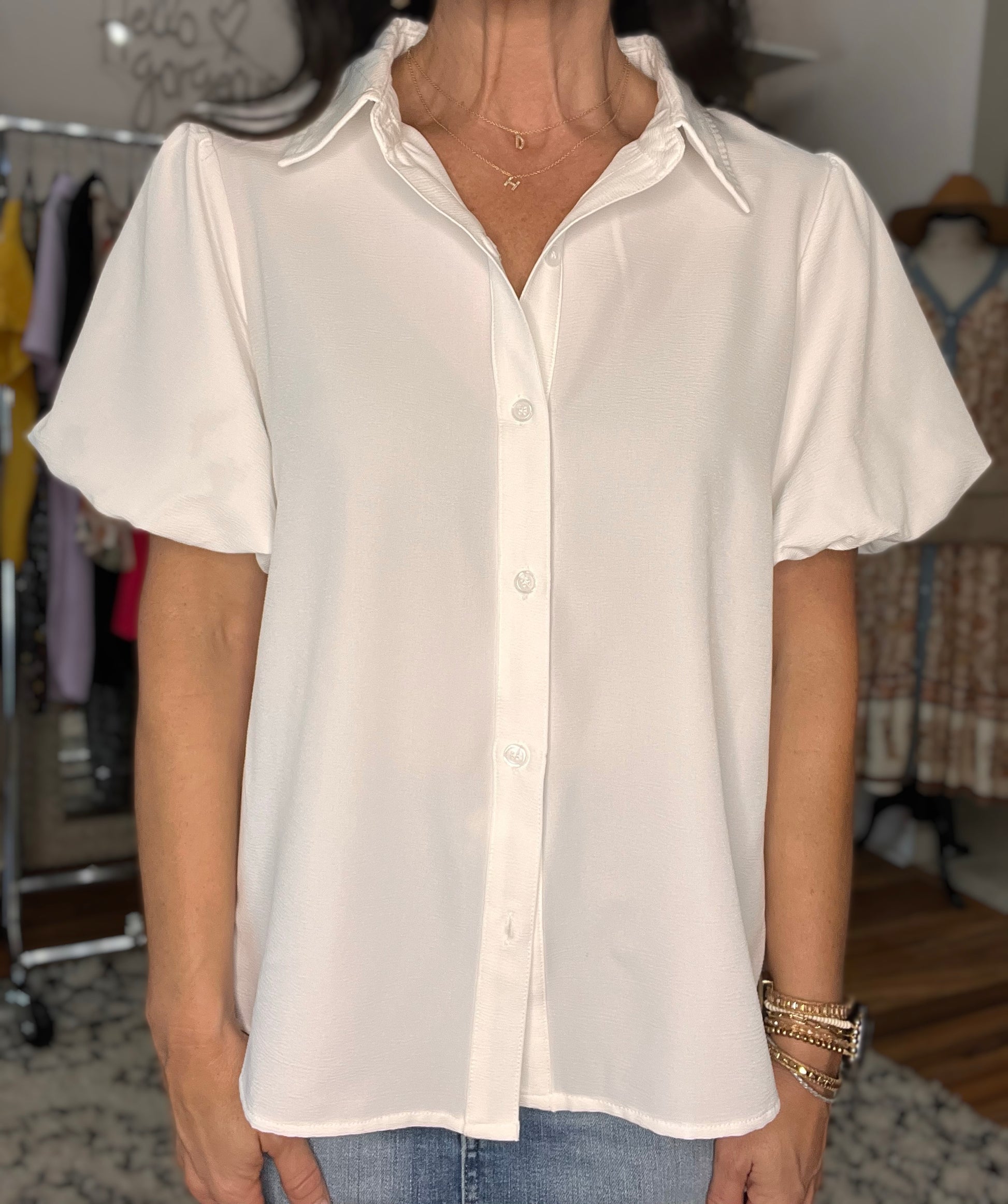Introducing our A Sixth Sense Balloon Sleeve Blouse! This blouse features a crinkle woven fabric for a unique texture, a collared neckline for a classic touch, and balloon sleeves with elastic cuffs for added style. Lined sleeves provide comfort, while the front button closure and scoop hemline make this blouse easy to wear. Elevate your wardrobe and make a statement with this must-have piece!