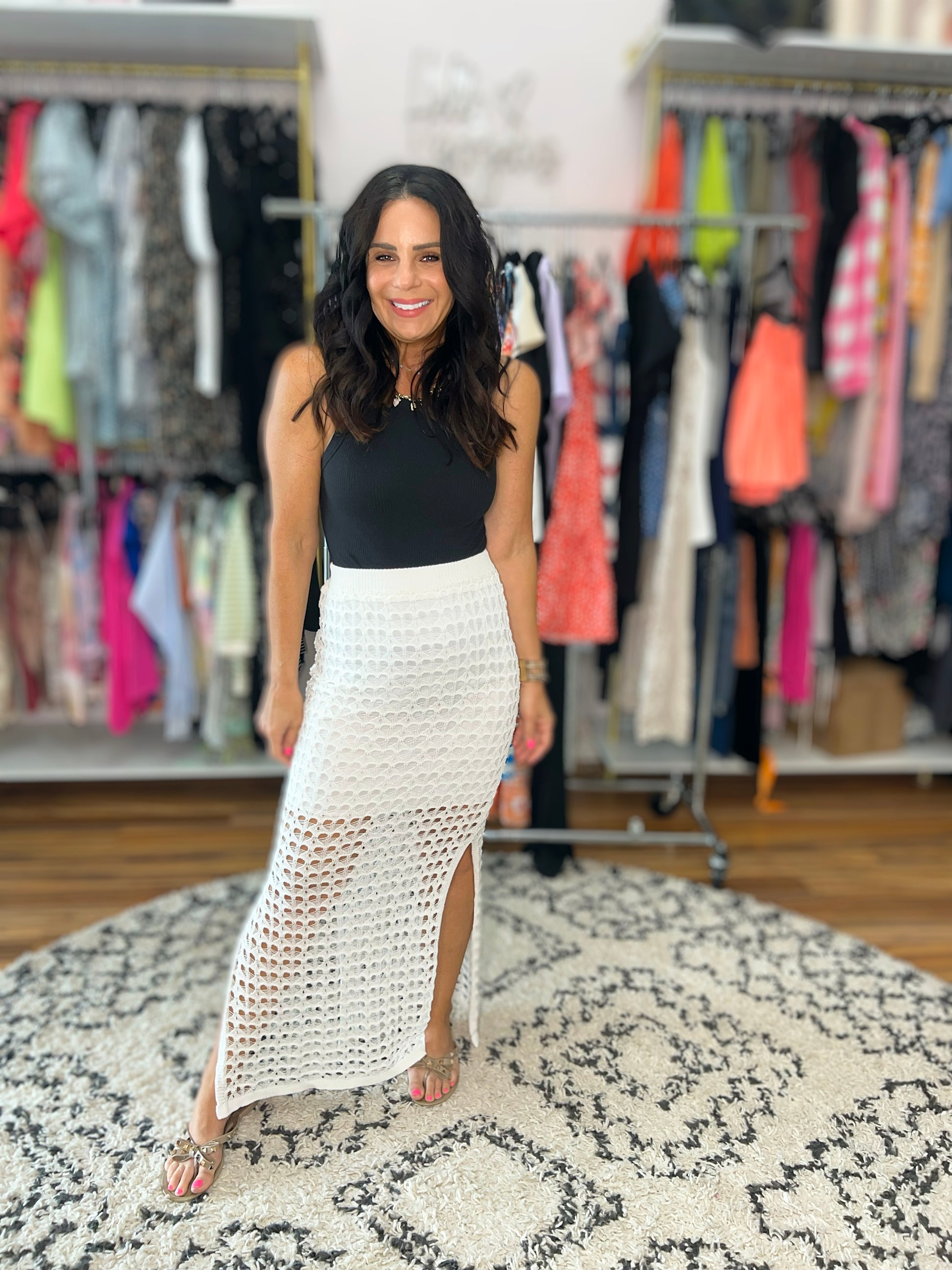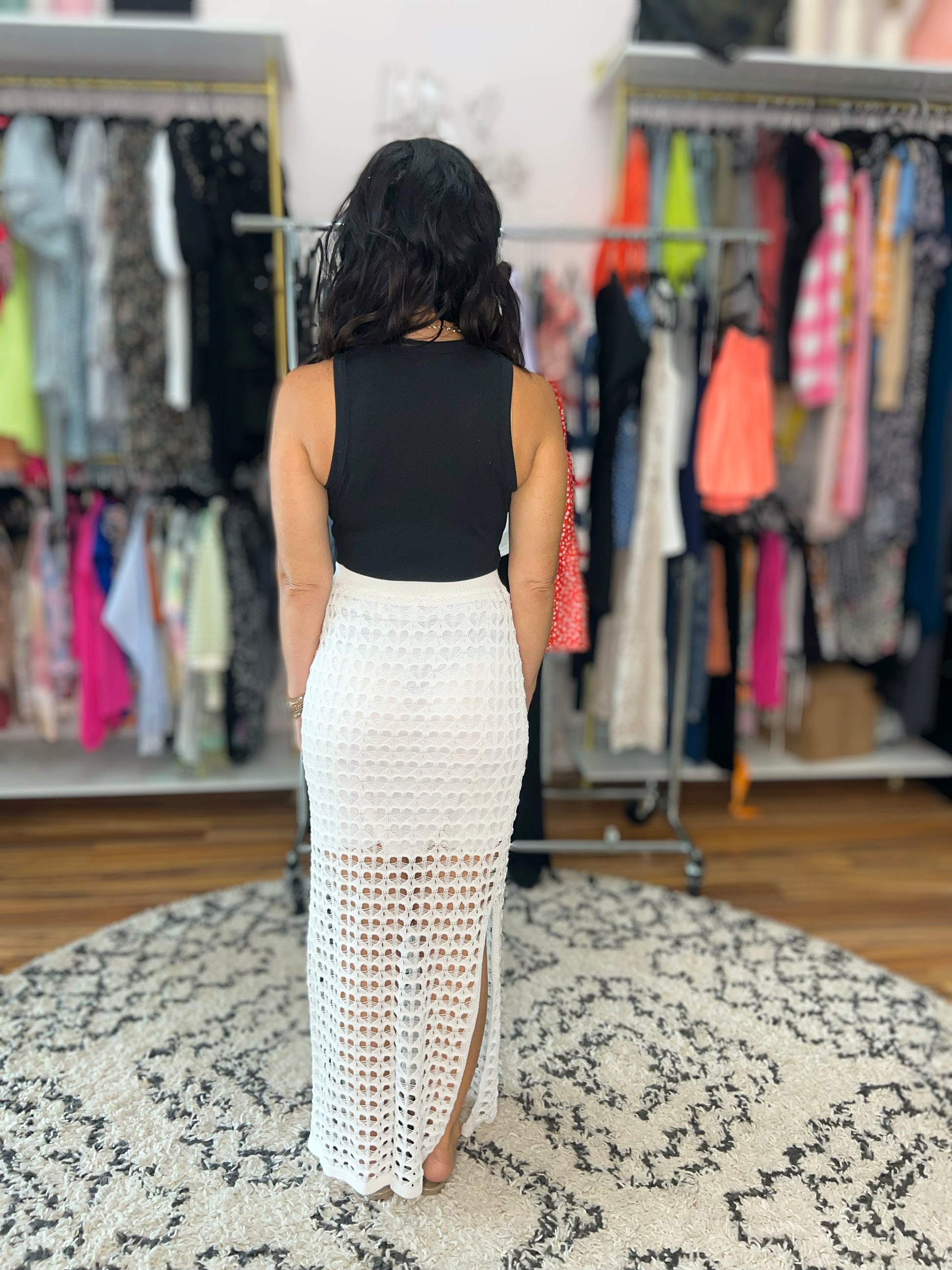 Elevate your summer style with our All Hands On Deck Skirt in Cream! Featuring delicate crochet details and a high stretch fabric, this skirt offers both comfort and style. The cased elastic ribbed waistline and side slits add a touch of femininity while keeping you cool. Perfect over your favorite swimsuit or on it's own!