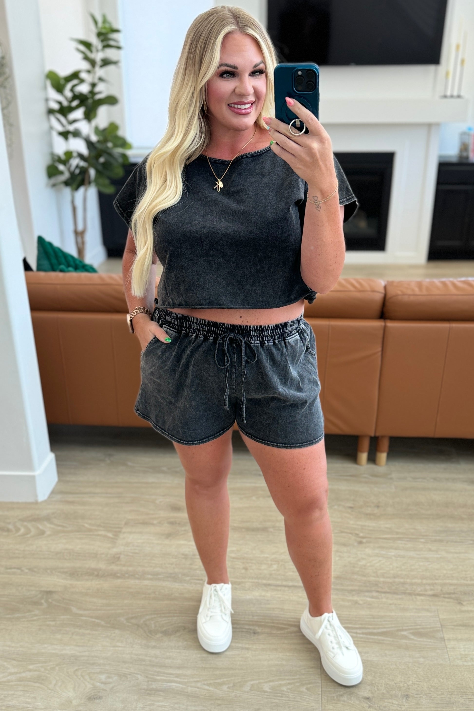 Unwind in style with our Back to Reality Mineral Wash Short Set. Made from soft jersey knit, this set features a playful raglan sleeve design and a comfortable elastic waistband with a functional drawstring. The mineral-washed fabric adds a unique touch, while functional side pockets on the shorts provide convenience. Get ready for ultimate relaxation!
