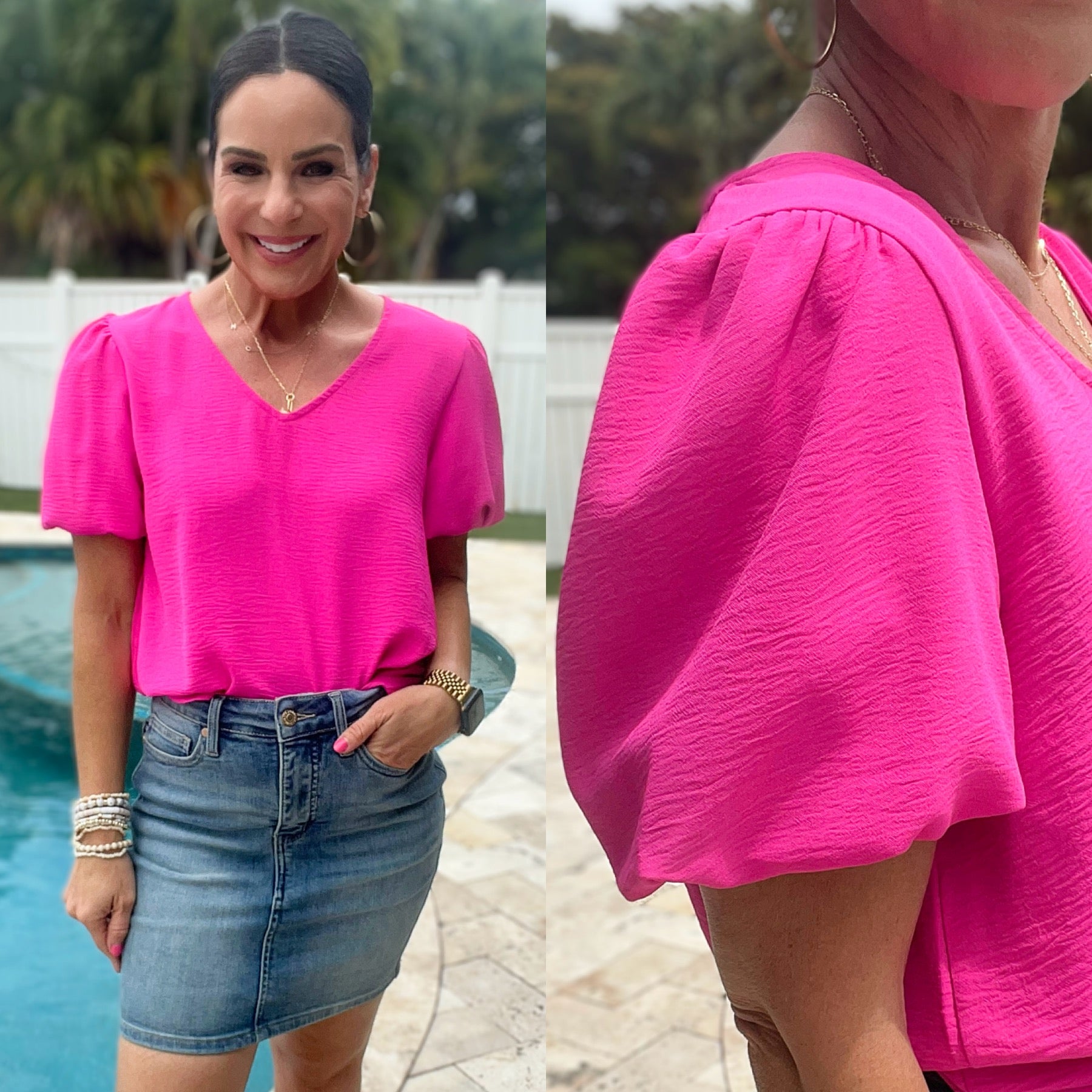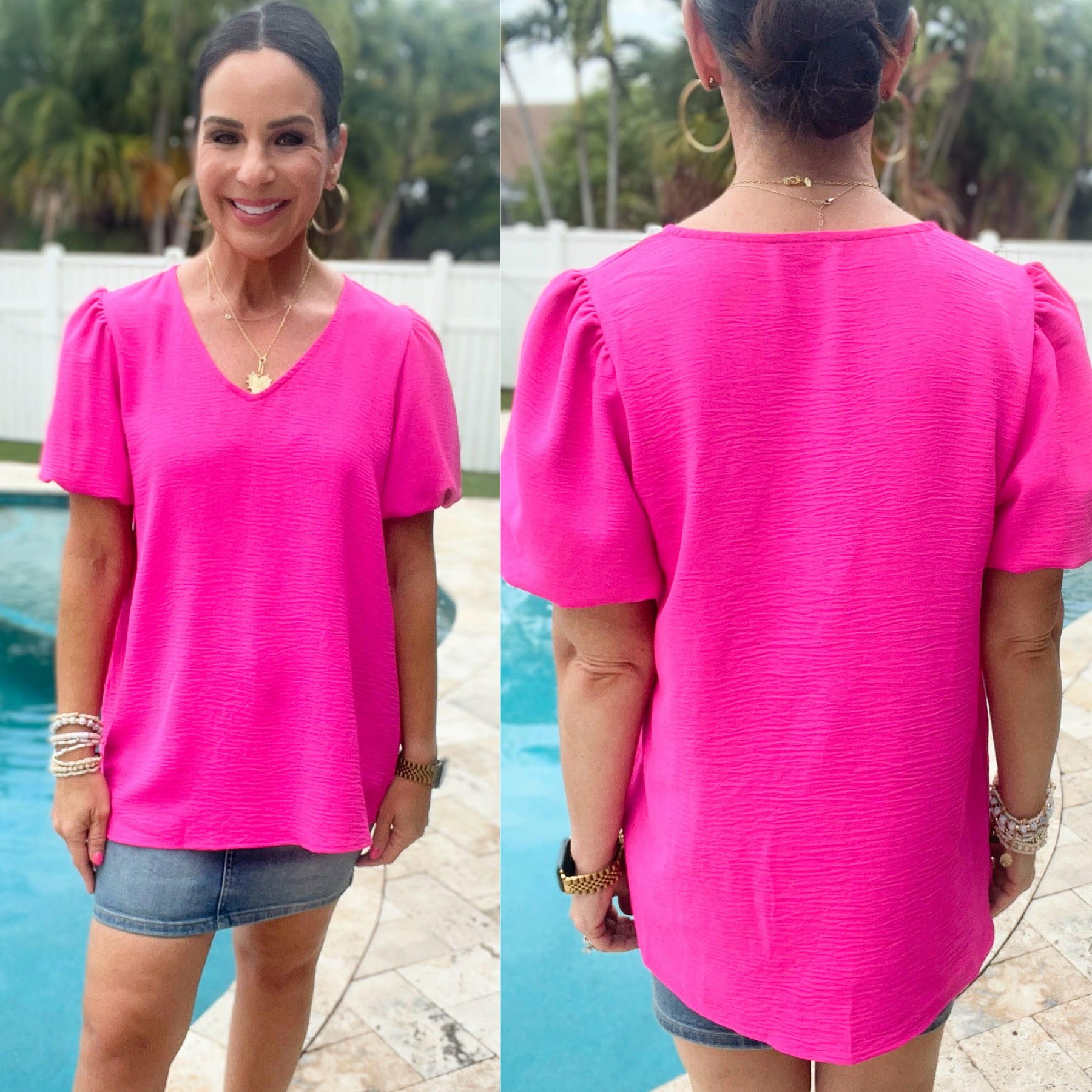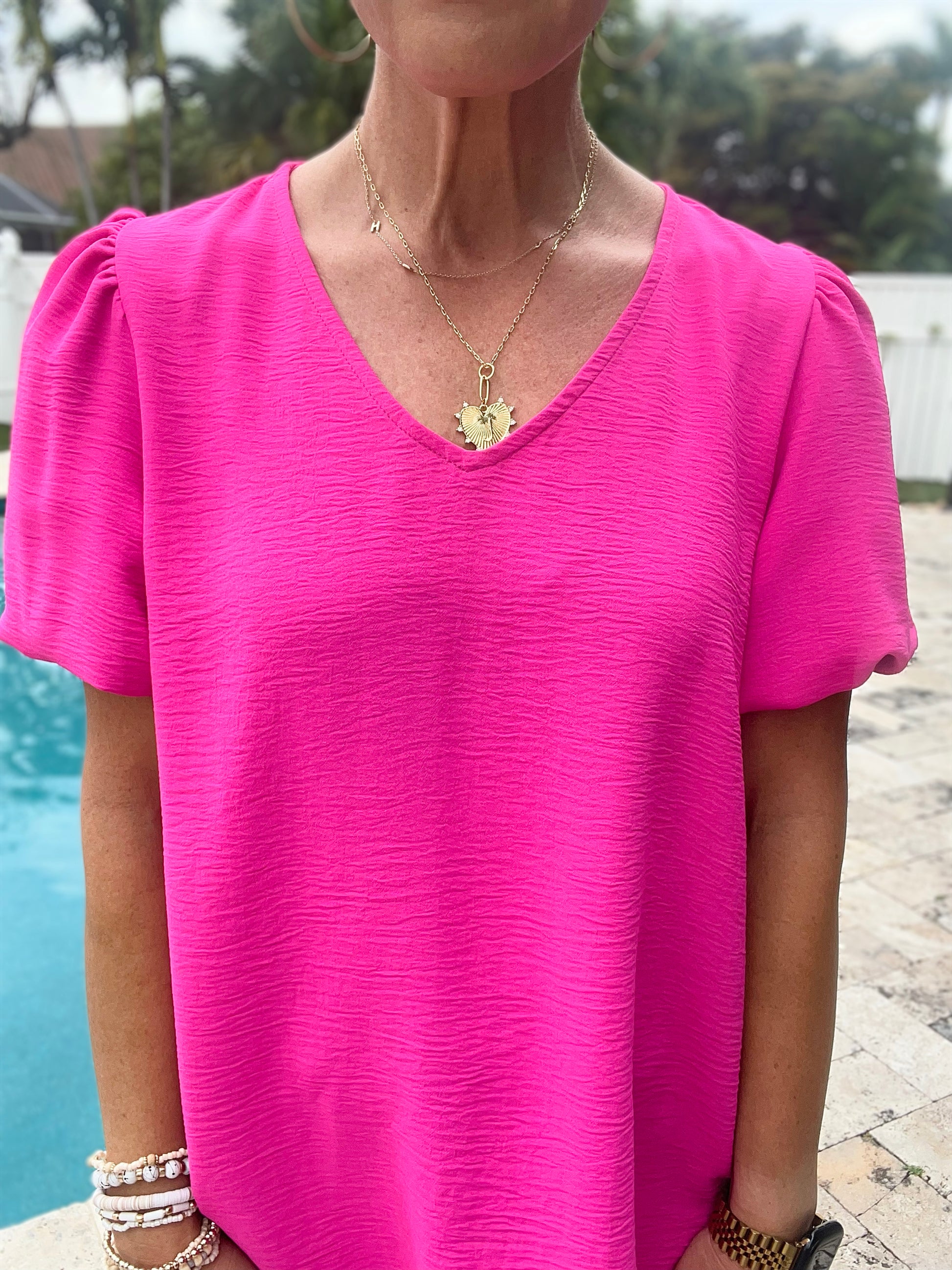 Meet your new go-to top, the Belong Together Puff Sleeve Blouse. Made with lightweight crinkle woven fabric, and featuring a flattering v-neck and playful balloon sleeves, this blouse is the perfect blend of comfort and style. Pair it with your favorite pants and get ready to turn heads!