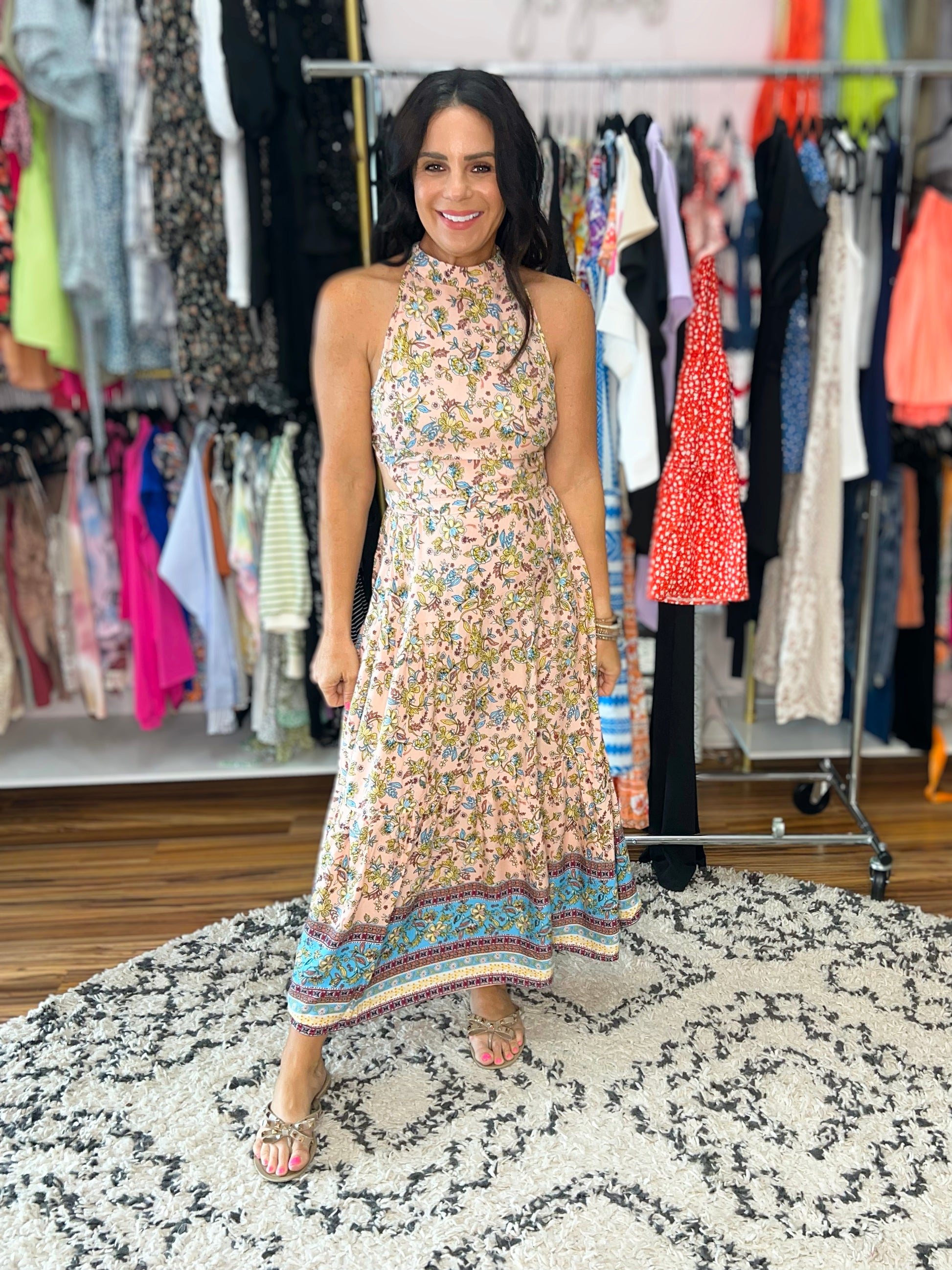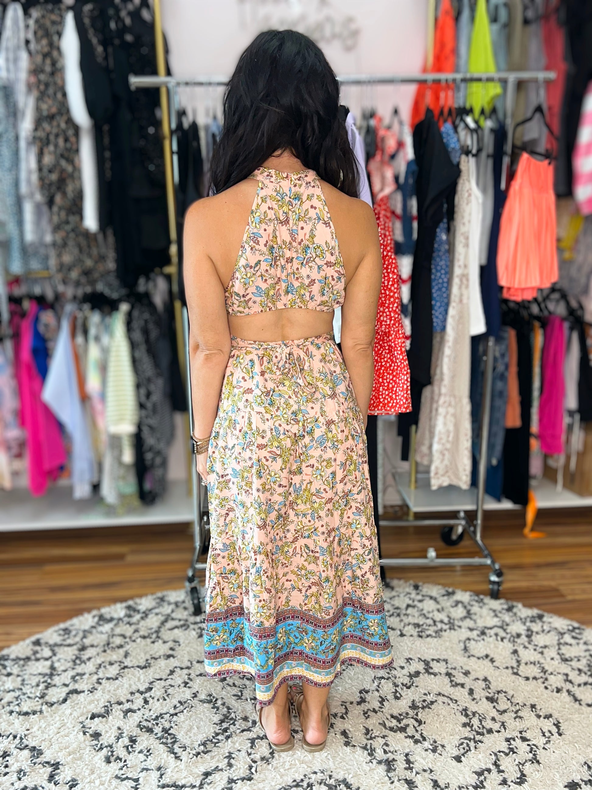 Make a statement with our Big Dreams and An Attitude Cutout Back Dress! The woven fabric features a gorgeous floral print while ensuring a comfortable fit, and the halter neckline and cutout back add a touch of flirty boldness. Use the functional waist tie to accentuate your figure and complete the look with a tiered design.