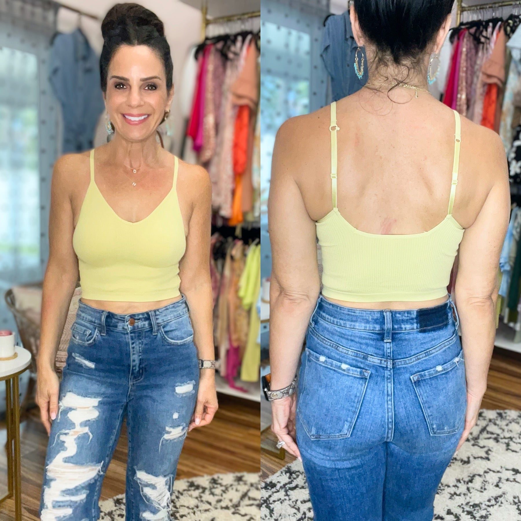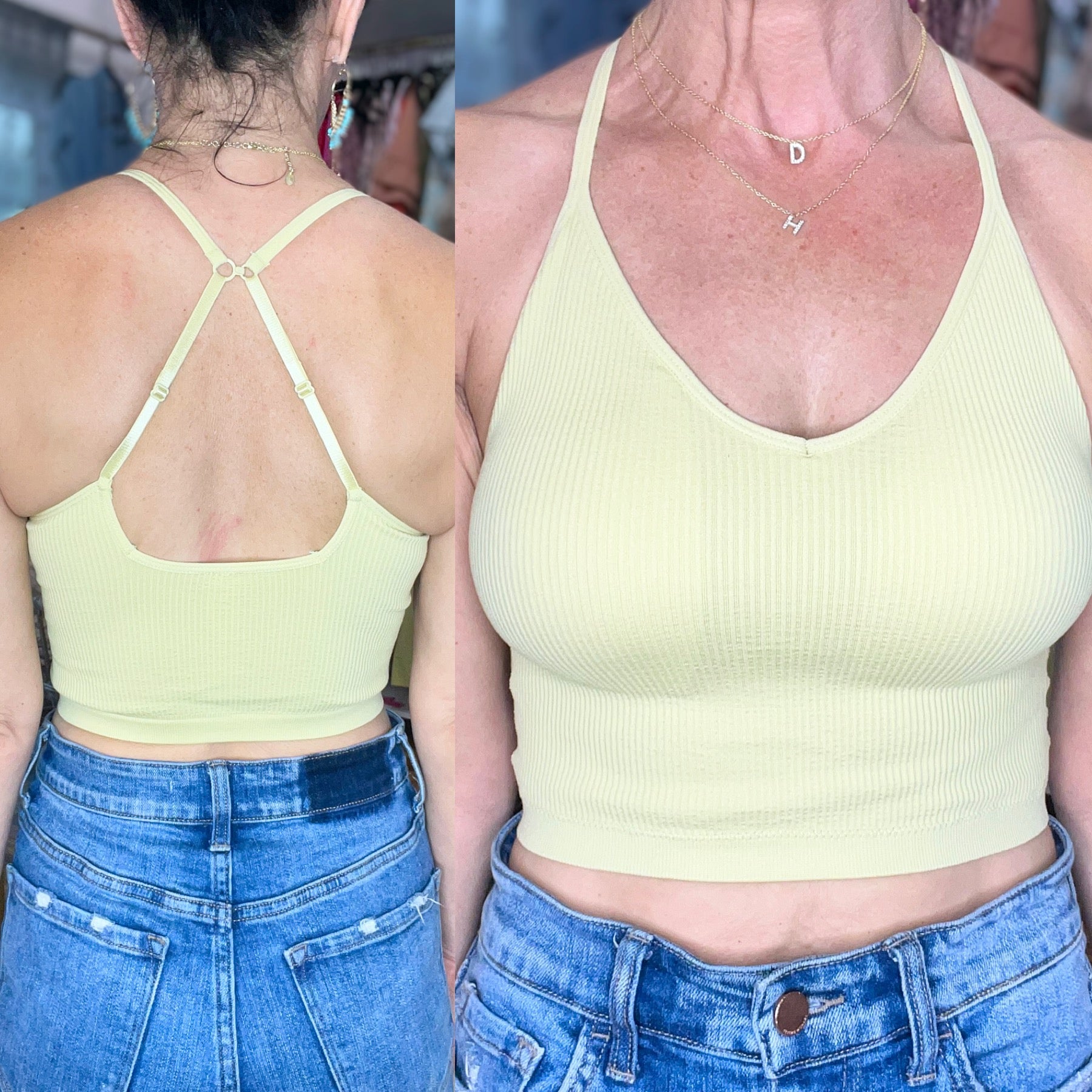 We all know how much you've loved the Betsy bralette...well, meet her sister, the Bobby! Basically the same, but a couple inches longer! Smooth and soft ribbed seamless bralette with adjustable straps that can be hooked to turn it into a T-back! Stiff padding leaves you lifted and secure, but they are removable.