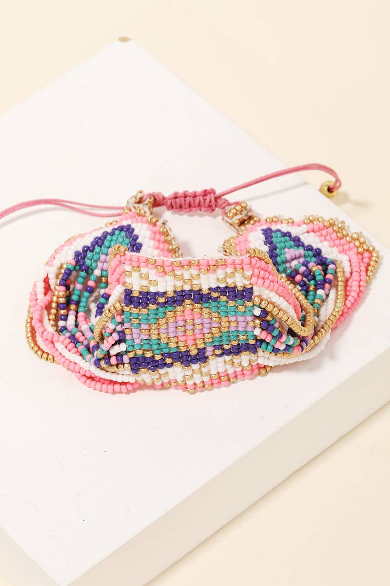 A must-have for any fashion-forward individual, this bracelet highlights a special boho seed beaded adjustable bracelet design. This accessory is an effortless way to add some personality to your outfit. Available in 4 colors - black, gray, pink & green