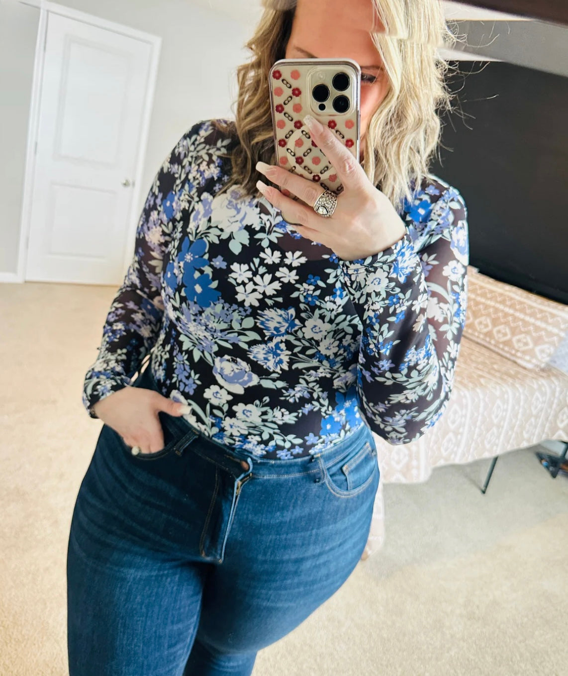 Get ready to embrace beauty with our Floral Print Mesh Top!