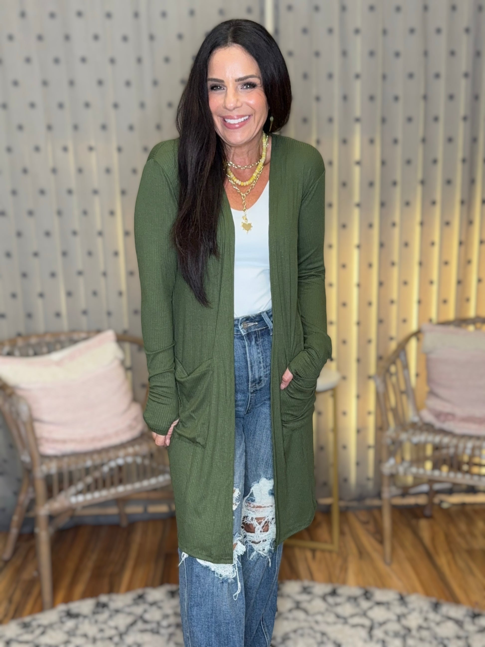 One of our BEST SELLING CARDIGANS, Now in Fall Colors! Perfect ribbed cardigans that feature oversized side pockets and thumb-hole sleeves. These are the OG best selling Sierra ribbed cardigan! Perfectly soft, lightweight and stretchy fabric! No need to think twice about these, they will be gone in a flash!