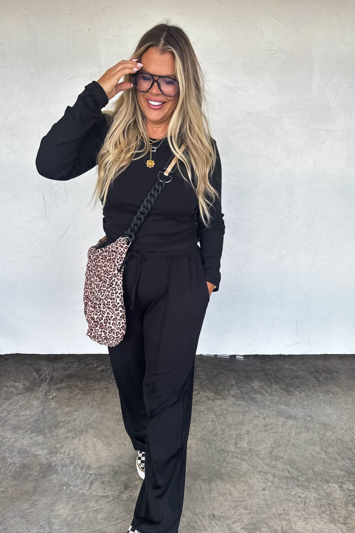 These sleek ribbed fabric lounge sets combine comfort and effortless style. The cute top features flattering side ruching, and long sleeve with thumbholes. Bottoms are relaxed fit with working drawstring and wide-legs. Pair this cute set with sneakers or slides for an easy, put-together look that’s as comfortable as it is chic.