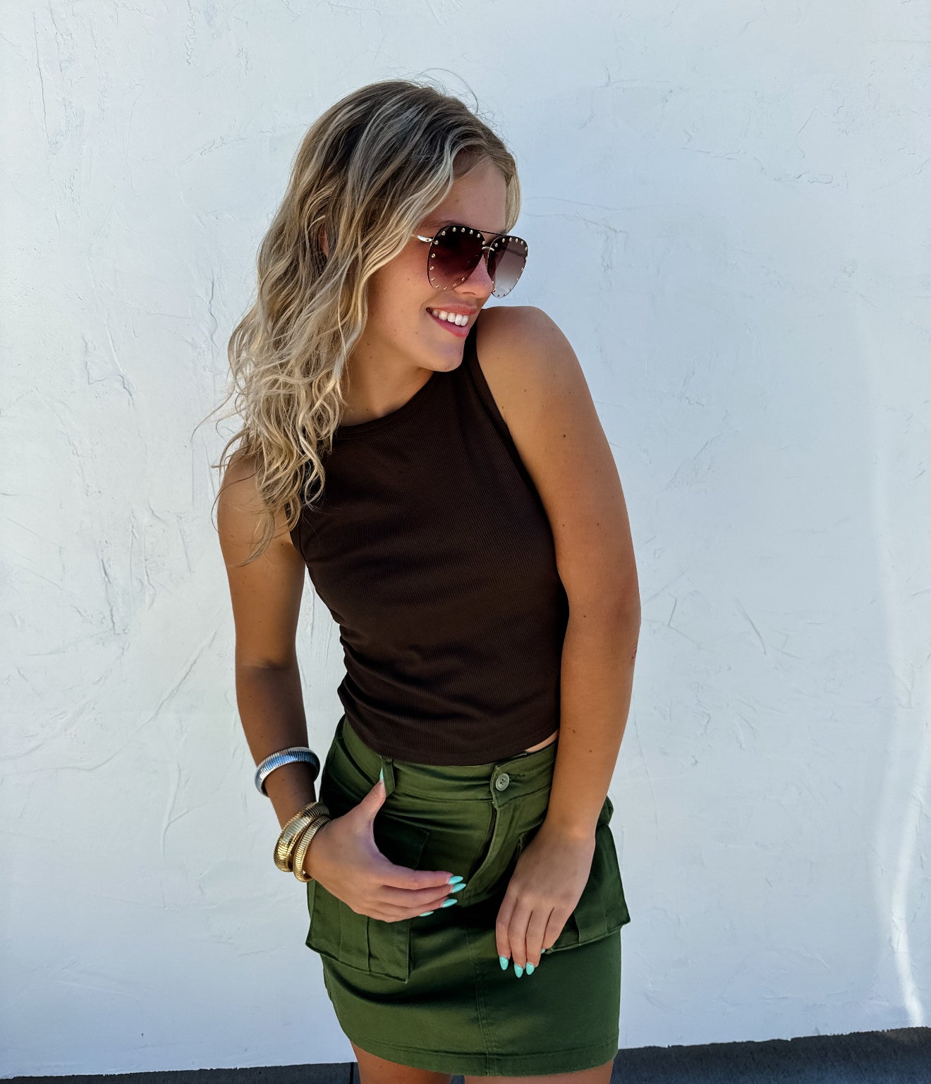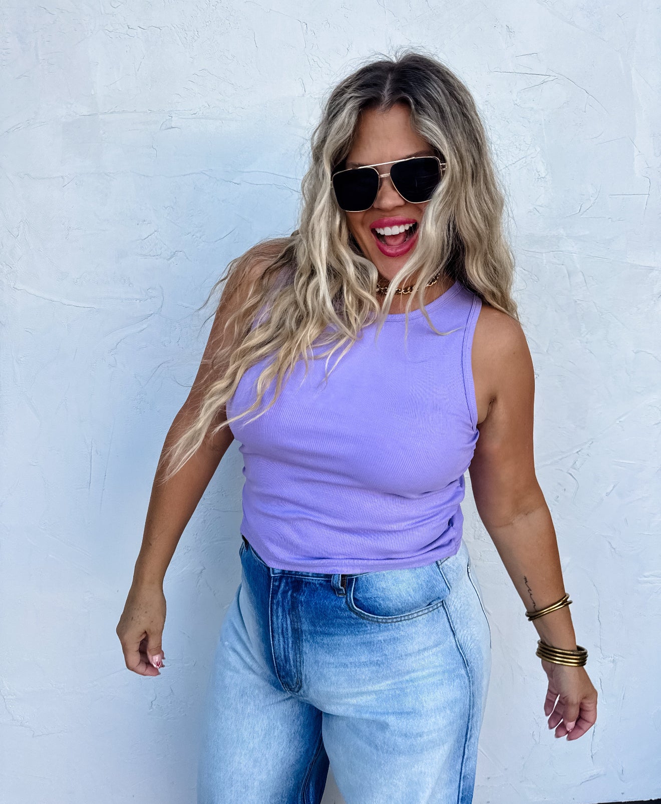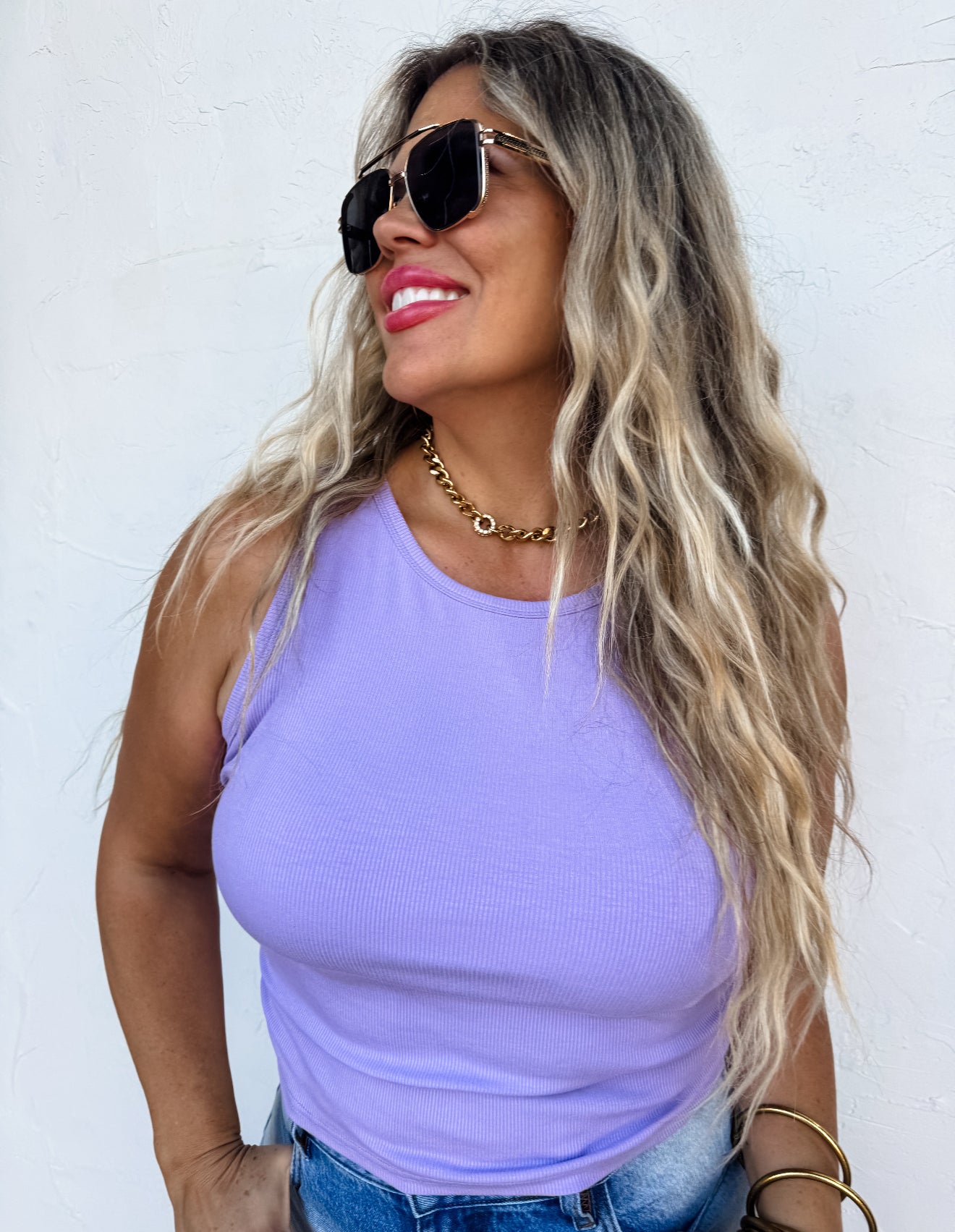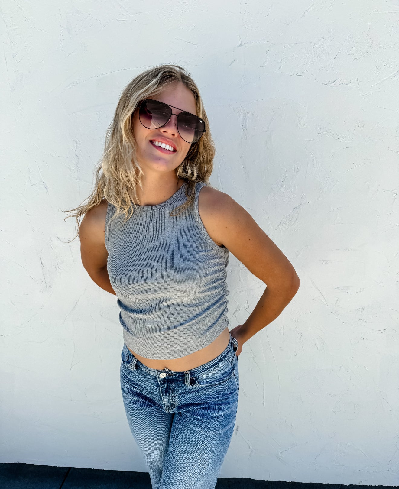 The cutest ribbed tank! Features side cinching for an extra cute detail. Softest rayon/span ribbed fabric! Grest stretch. The perfect every day tank! Comes in five colors - white, black, lavender, gray & tan!