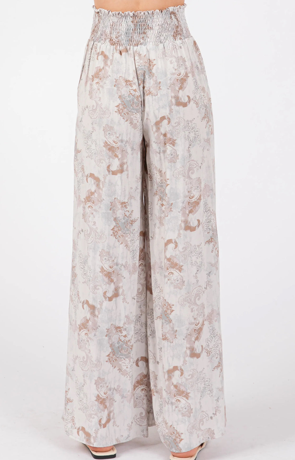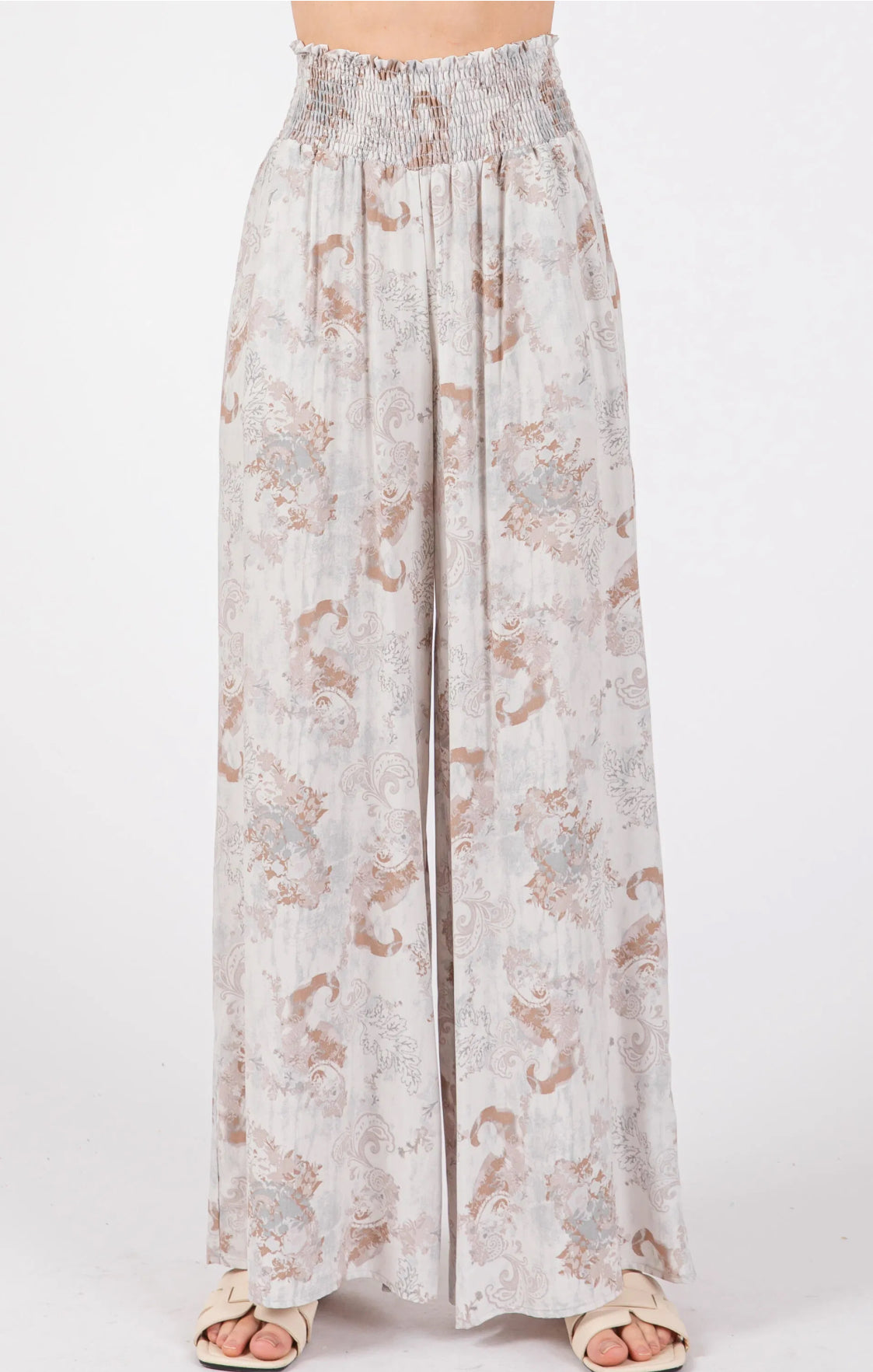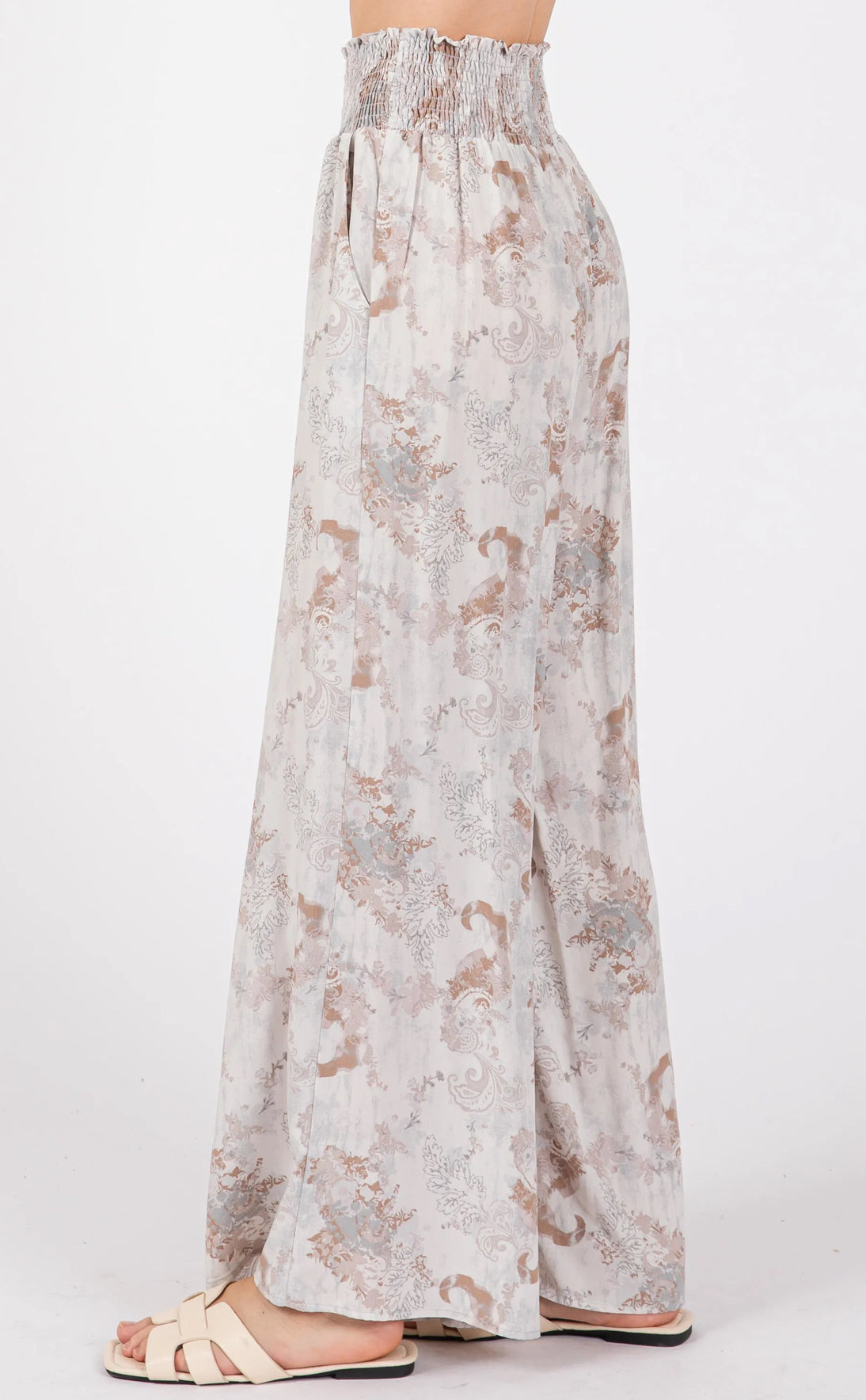 Get swept into Fall with these wide-legged pants, featuring a smocked waist. True to the size chart, but size up if between sizes. .
