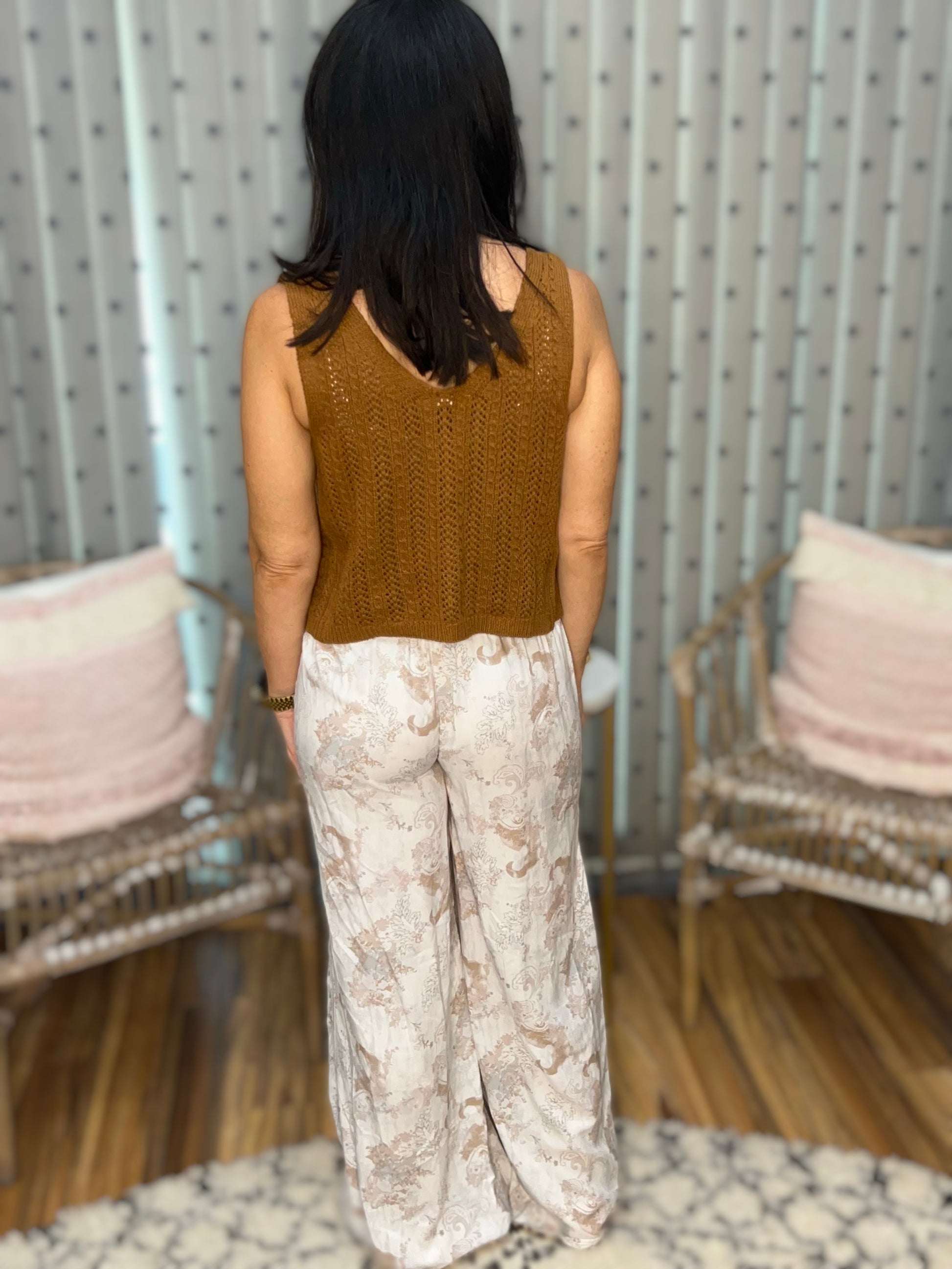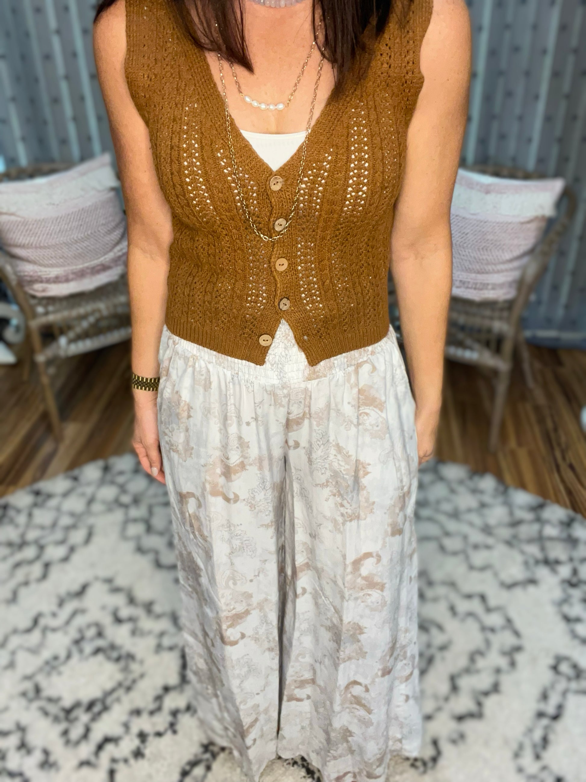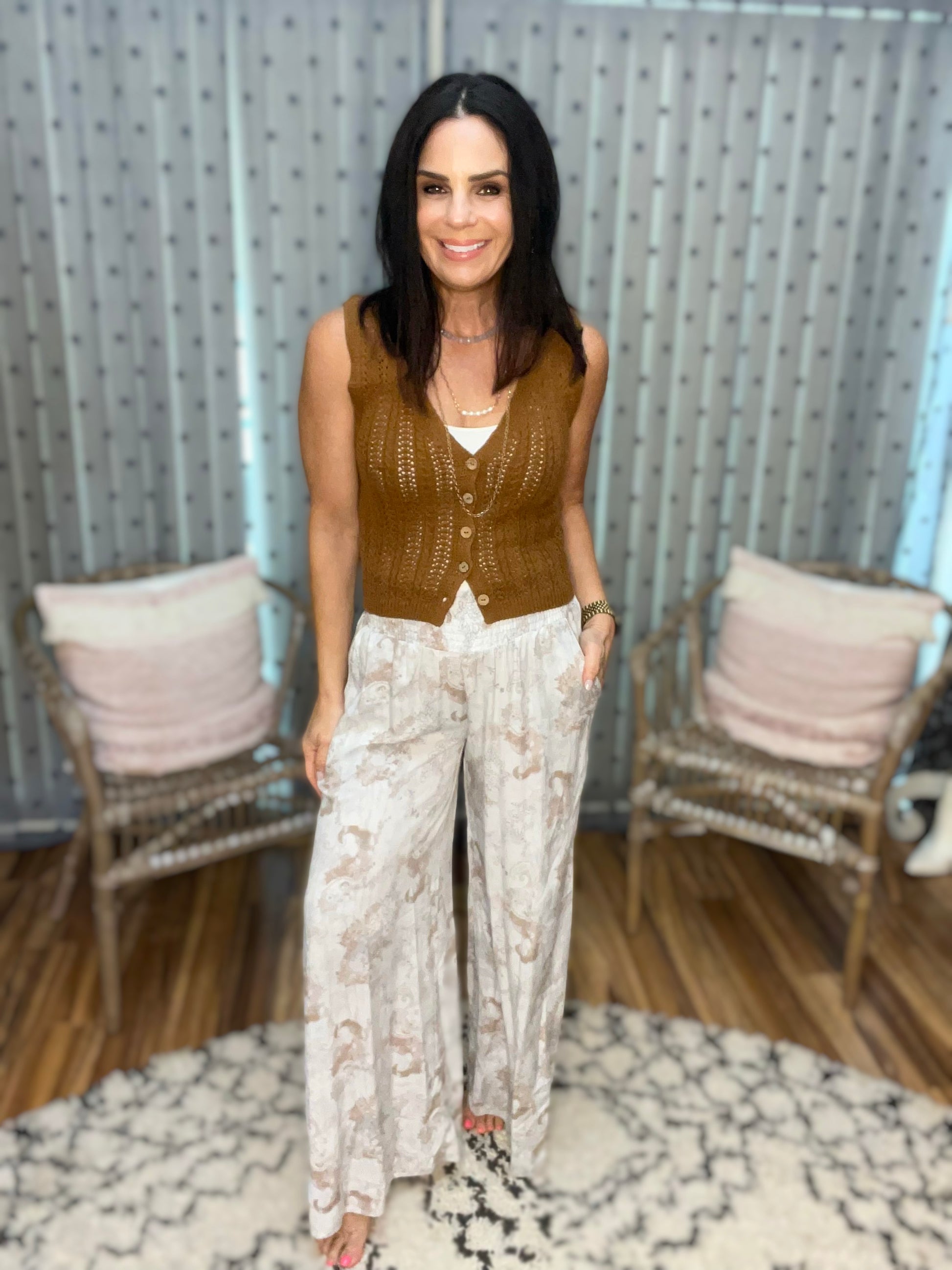 Get swept into Fall with these wide-legged pants, featuring a smocked waist. True to the size chart, but size up if between sizes. .