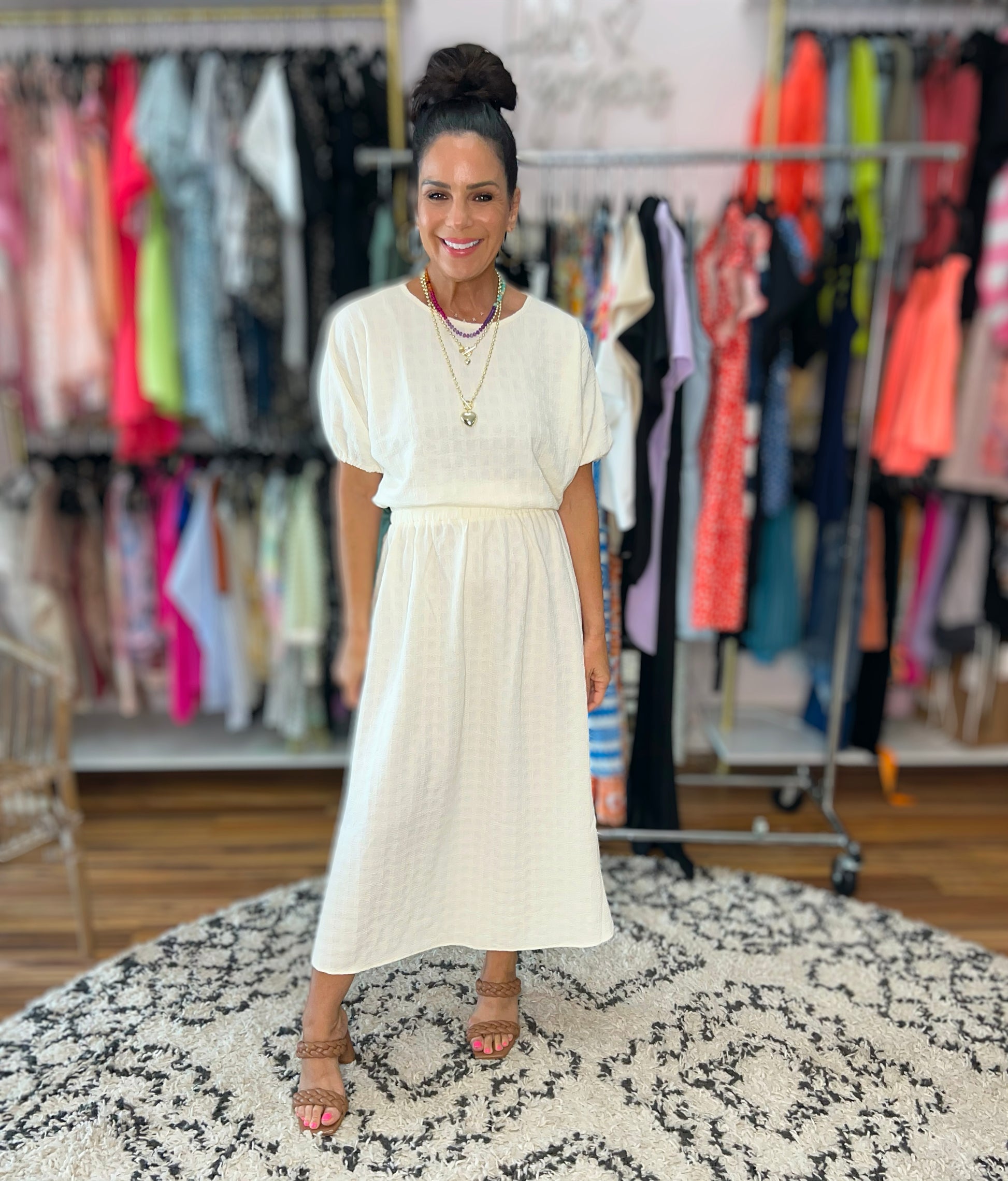 Elevate your wardrobe with The Finer Things In Life Top and Skirt Set. Made of crinkle woven fabric, this set features a round neckline and dolman sleeves with cased elastic details for a comfortable fit. The cropped top and skirt both have cased elastic waistlines and hems, perfect for a stylish yet effortless look.