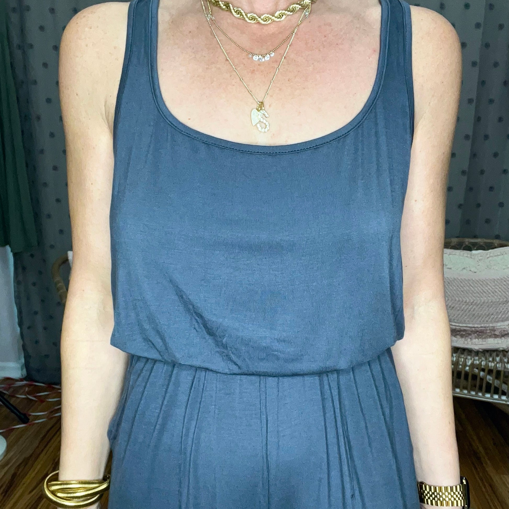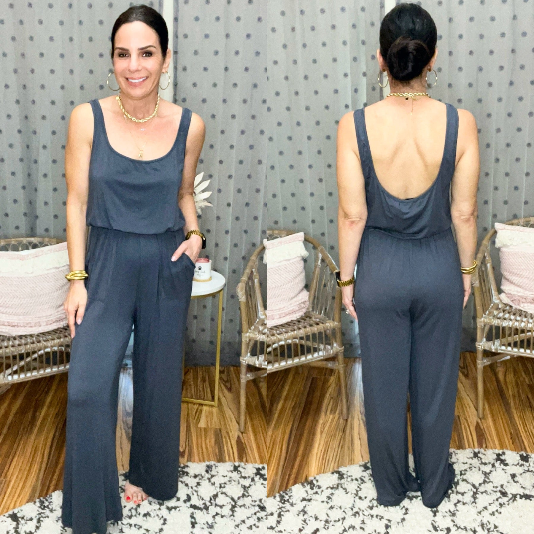 The Shay Square Neck Modal Jumpsuit - Charcoal