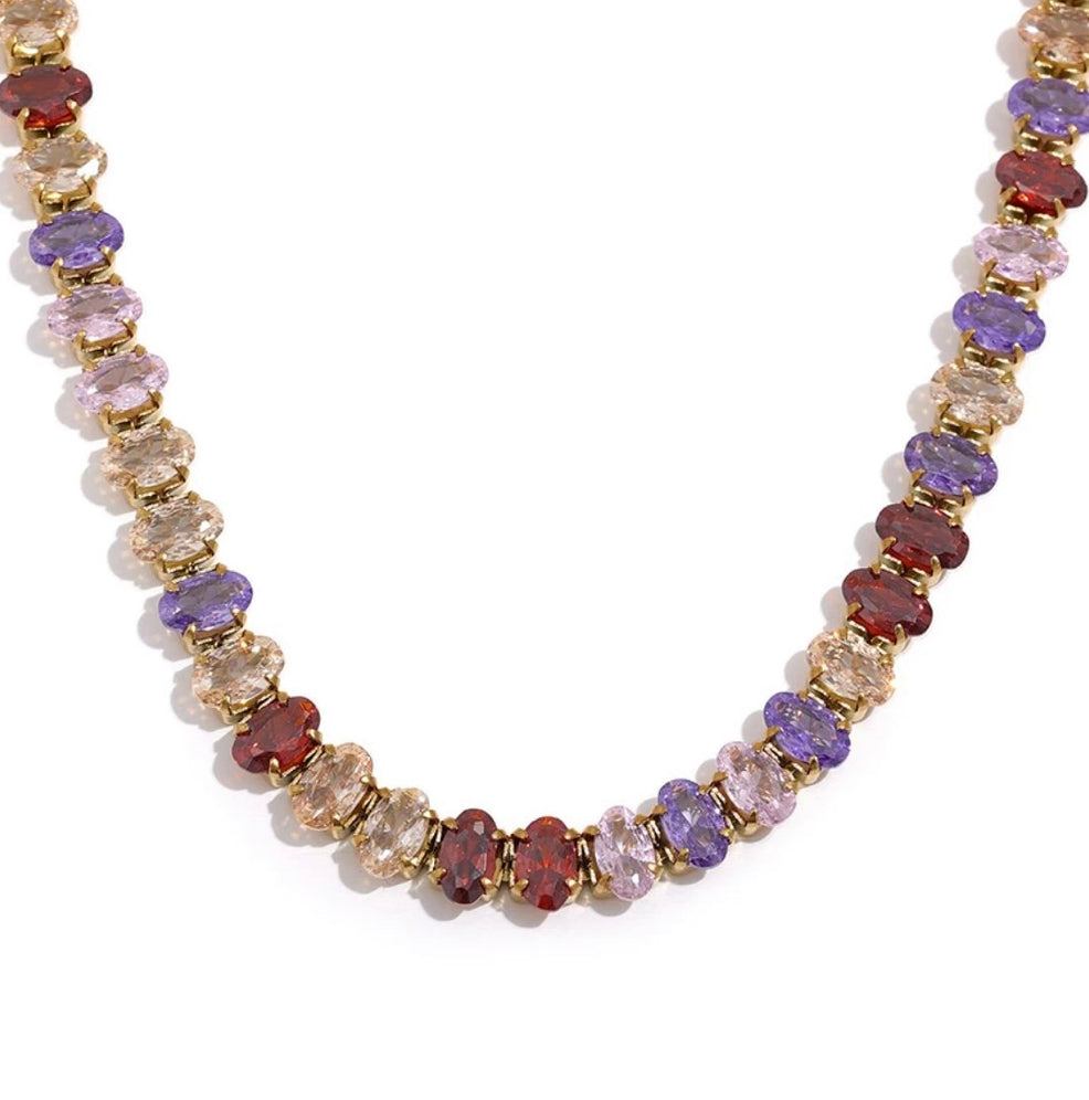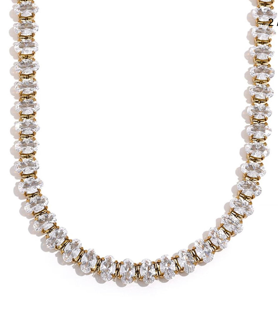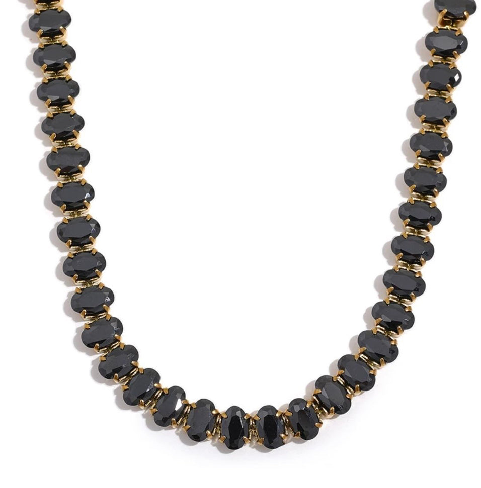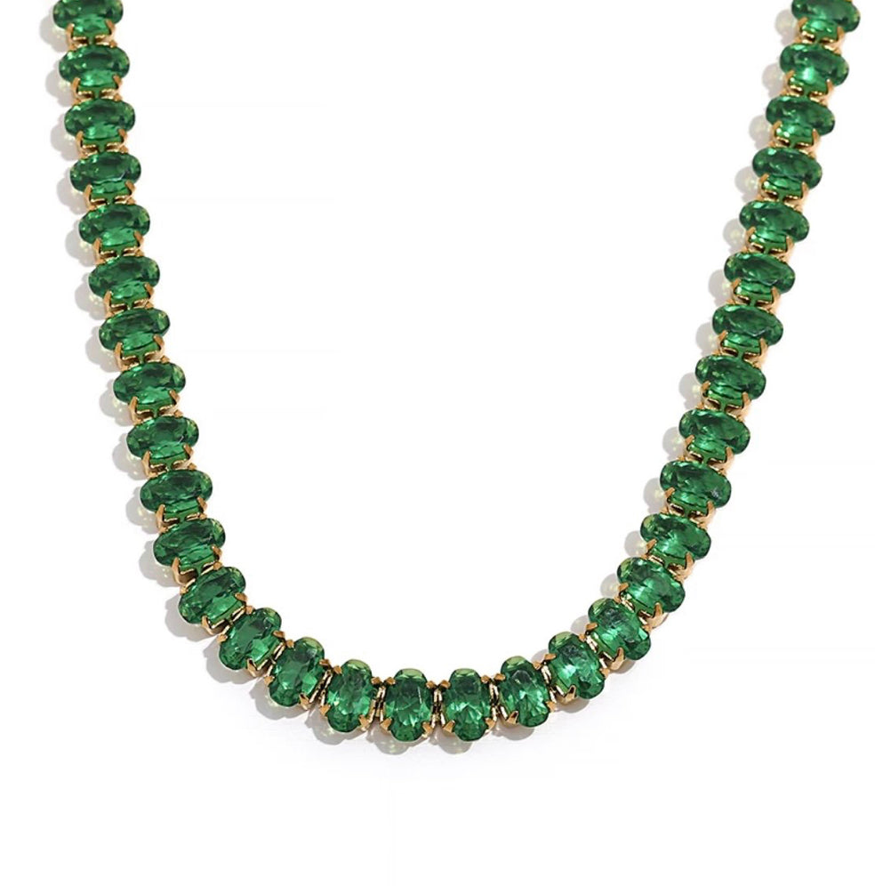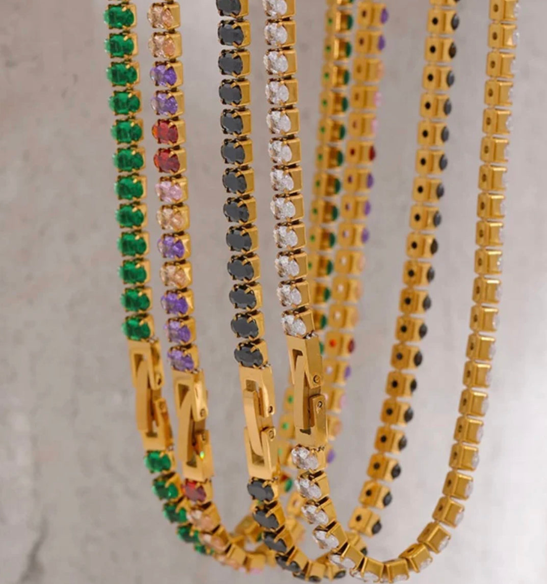 The loo for less! Get that expensive tennis necklace look without the crazy price tag! Comes in white, black, emerald or mixed colors.