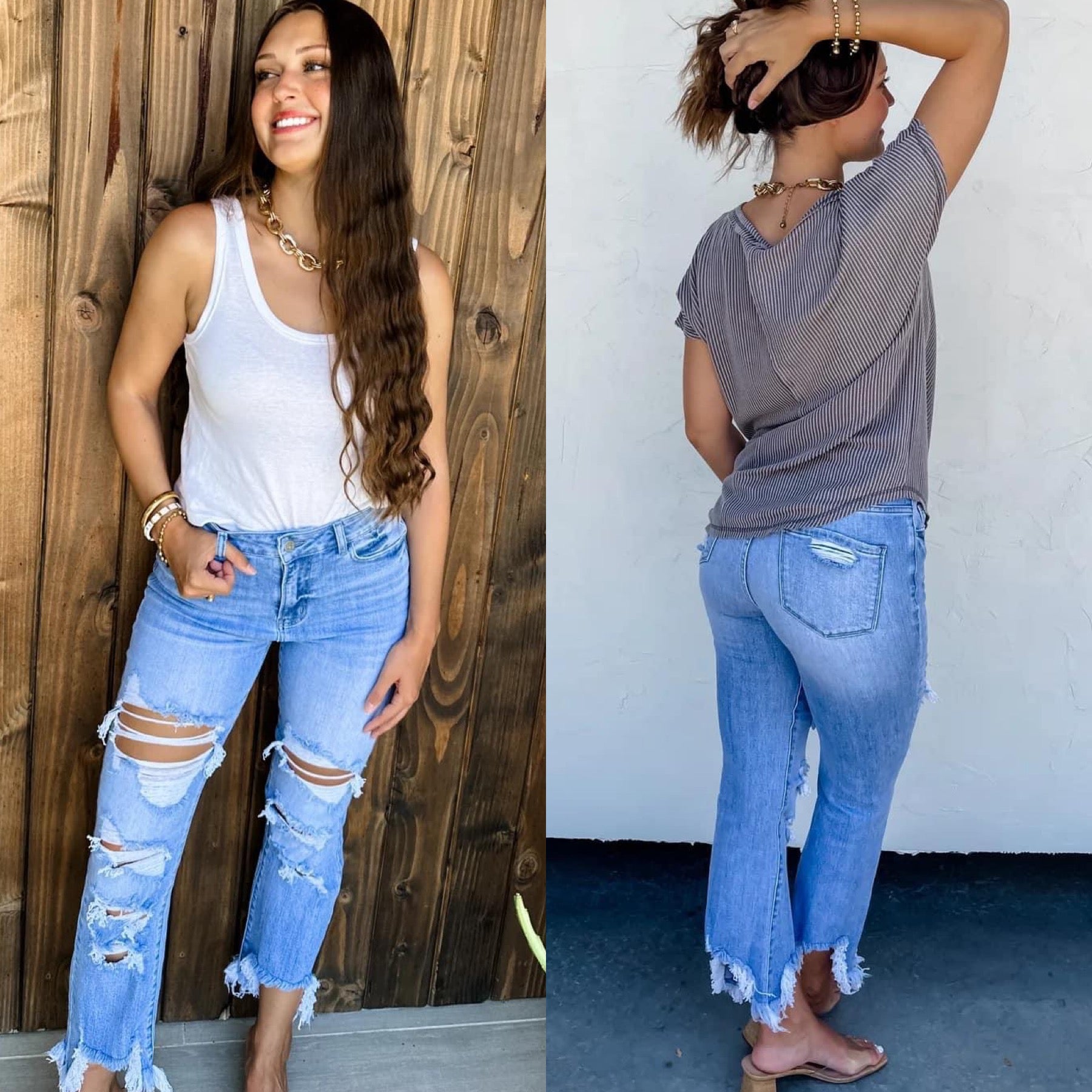 *****DISTRESSING WILL VARY! These are hand distressed so while knee distressing will be "similar" per piece, they likely will not be identical in wash/color and distress******