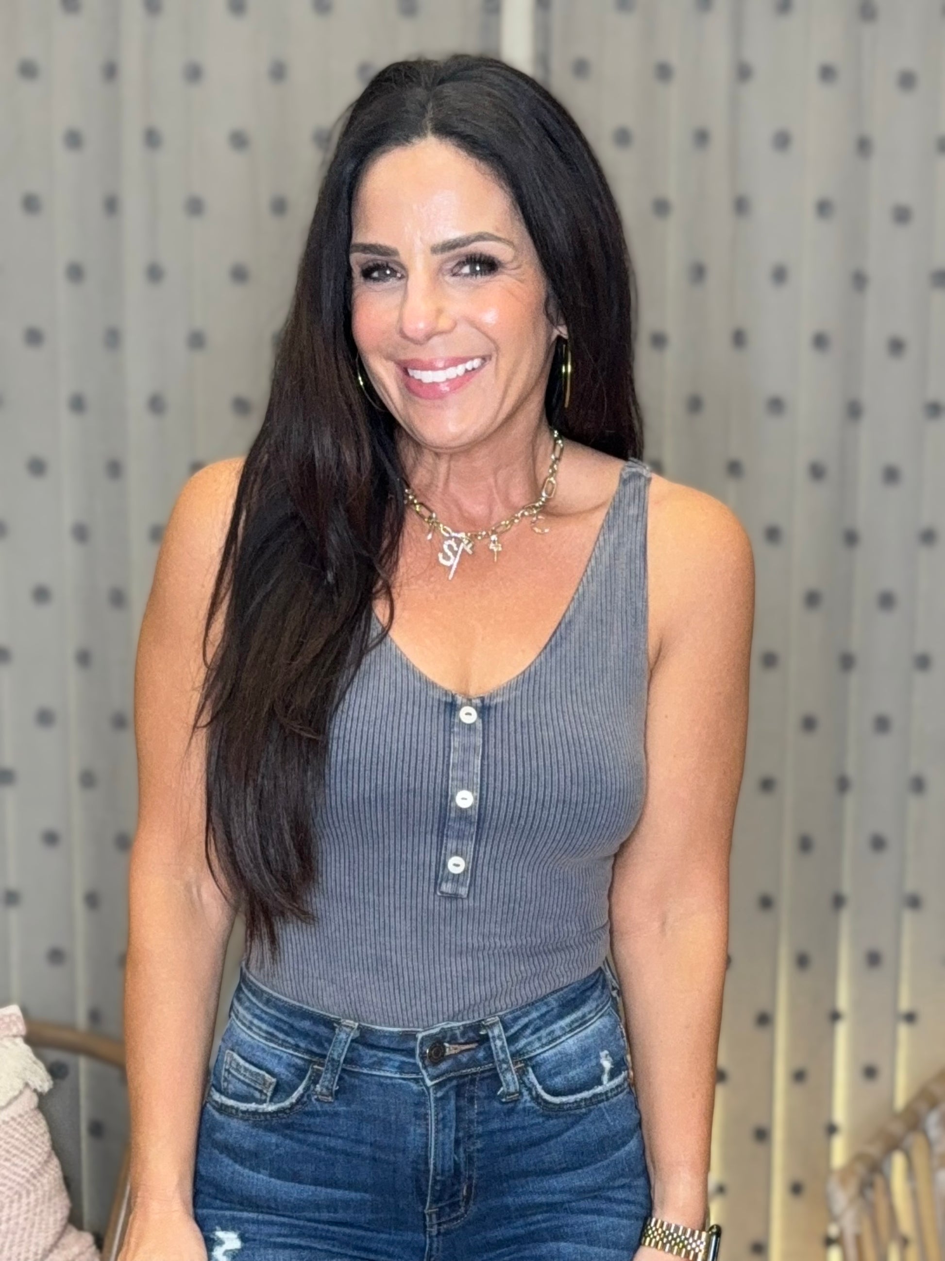 Effortlessly cool and perfectly flattering, our Blue Haze Lace-Up Ribbed Bodysuit brings a little edge to your everyday look. This soft, stretchy ribbed knit hugs your shape while keeping you comfortable all day long. The front features a button-down detail for a casual, laid-back vibe, while the lace-up back adds a flirty, unexpected twist. Pair it with your favorite denim, joggers, or skirts for a look that transitions from day to night with ease.