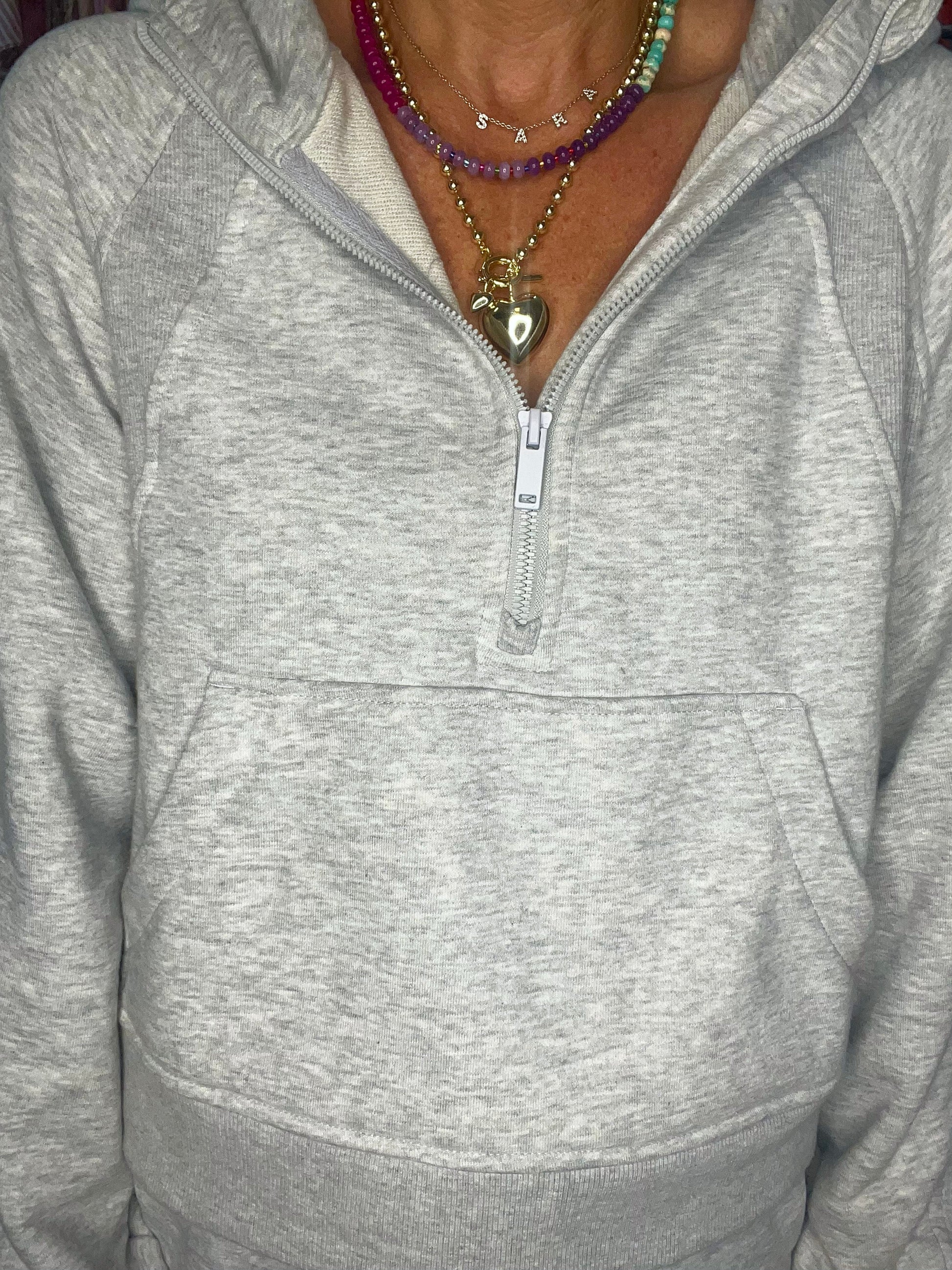 Stay cozy and stylish in our Working Up A Sweat Hooded Pullover. Made with soft terry cloth, this hooded pullover features a half zipper closure, raglan sleeves, and banded ribbed details. Keep your hands warm with the kangaroo pocket and thumb holes and adjust the fit with the ribbed hemline. Perfect for working out or lounging around!